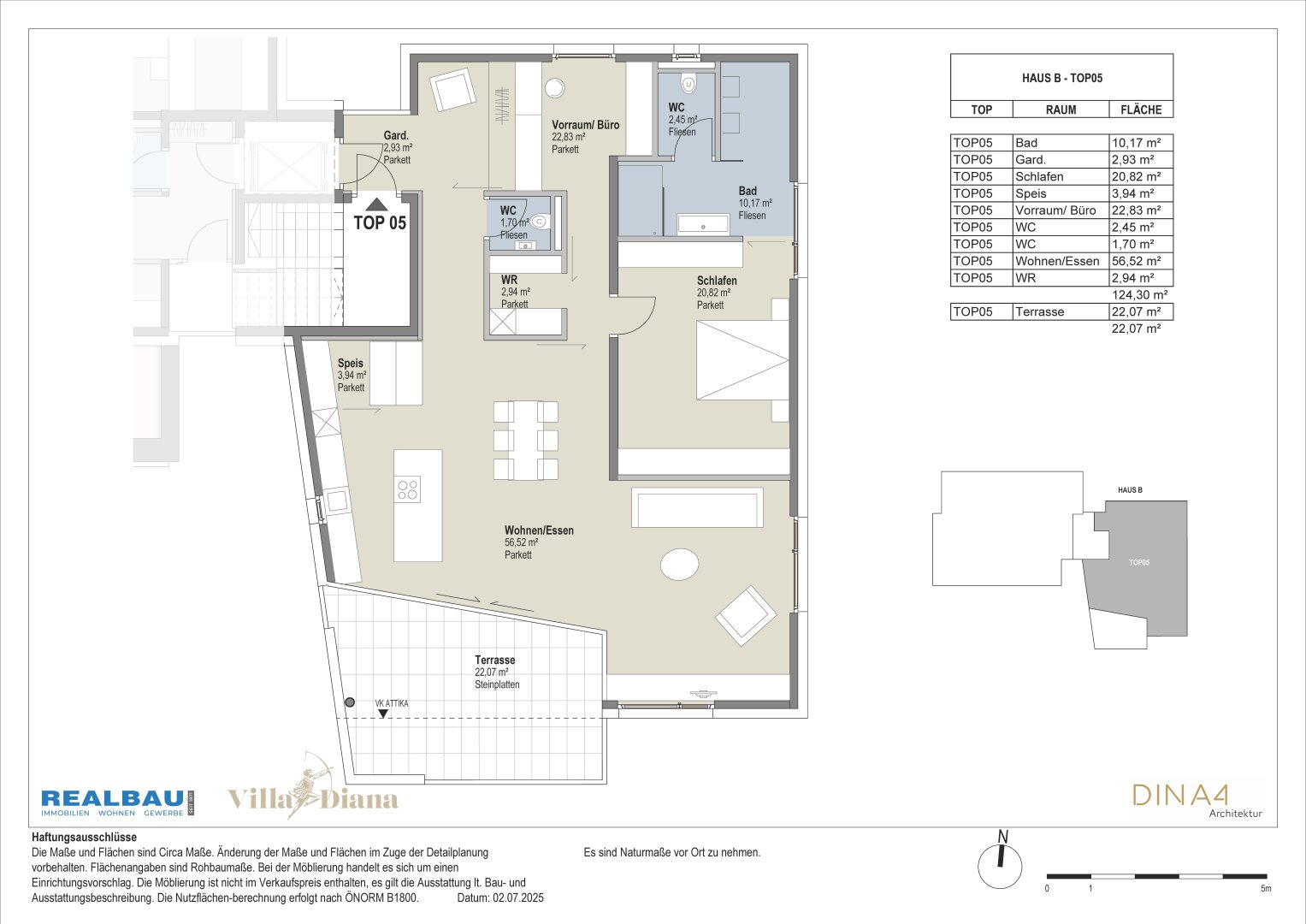 Offenheit und Eleganz verspürt man, wenn sich der Personenlift direkt in der Wohnung öffnet. Das durchdachte Raumkonzept ist umsichtig geplant. Die Küche mit Speis und der Essbereich bilden das Herz der Top 05 – das Wohnzimmer eine Nische der Geborgenheit.