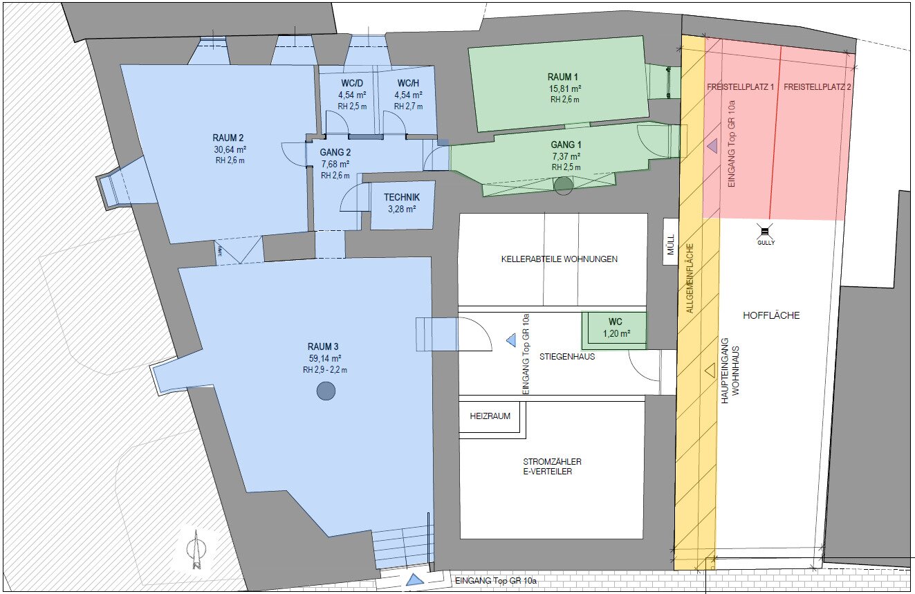 Be- und Entladung über Hoffläche/Stiegenhaus möglich