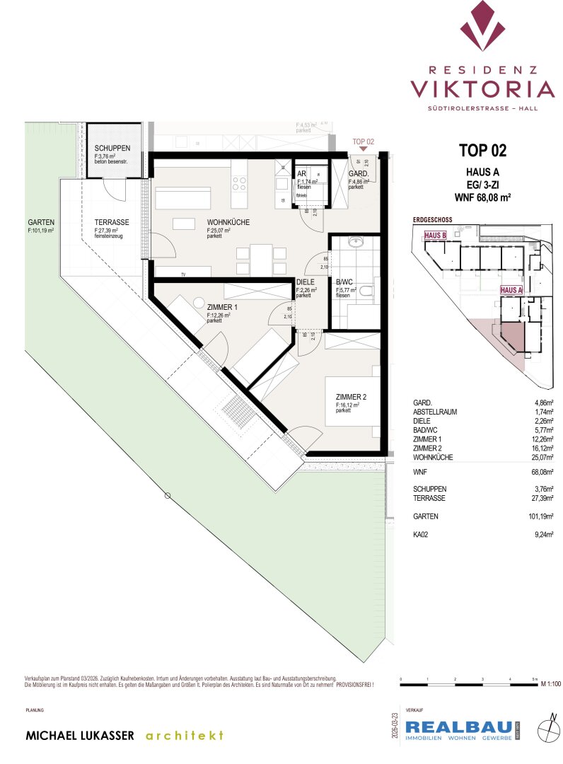 In bester Lage, westlich vom Stadtzentrum Hall, entsteht eine repräsentative Wohnanlage, bestehend aus zwei Baukörpern und einer gemeinsamen Tiefgarage. Die Nähe zum Stadtzentrum, zur Infrastruktur, zu den Verkehrswegen und Erholungsgebieten macht dieses Wohnbauprojekt besonders begehrenswert. Die ansprechende Architektur, eingebettet in attraktive Gartenanlagen, geben ein Gefühl von Zufriedenheit, Sicherheit und Komfort in den eigenen vier Wänden.
